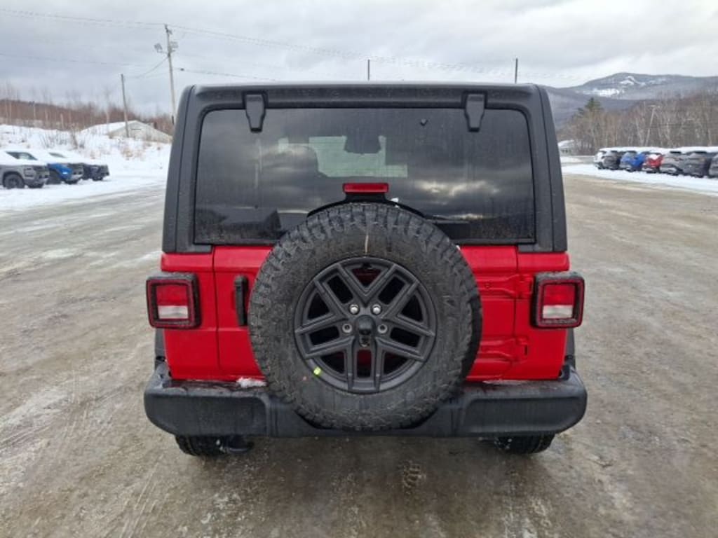 Convenience Group (2-Door Passive Entry, Front Door Locks, Air Conditioning with Auto Temp Control, Air Filtering, Cluster 7.0" TFT Color Display, Emergency/Assistance Call, Heated Front Seats, Heated Steering Wheel, and Universal Garage Door Opener), LED Headlamp and Fog Lamp Group (Front LED Fog Lamps and LED Premium Reflector Headlamps), Quick Order Package 22S Sport S (Advanced Brake Assist, Automatic Headlamps, Corning Gorilla Glass, Deep Tint Sunscreen Windows, Enhanced Adaptive Cruise Control, Full Speed Forward Collision Warning Plus, Power Heated Mirrors, Premium Wrapped Steering Wheel, Security Alarm, Sun Visors with Illuminated Vanity Mirrors, and Wheels: 17" x 7.5" Gray), 12.3" Touchscreen Display, 3.45 Overall Top Gear Ratio, 4-Wheel Disc Brakes, 4G LTE Wi-Fi Hot Spot, 8 Speakers, ABS brakes, Air Conditioning, AM/FM radio: SiriusXM with 360L, Apple CarPlay, Apple CarPlay/Android Auto, Aux Battery, Black 3-Piece Hard Top, Brake assist, Cloth Low-Back Bucket Seats, Compass, Connectivity - US/Canada, Delay-off headlights, Driver door bin, Driver vanity mirror, Dual front impact airbags, Dual front side impact airbags, Electronic Stability Control, For More Info, Call 800-643-2112, Freedom Panel Storage Bag, Front anti-roll bar, Front Bucket Seats, Front Center Armrest w/Storage, Front fog lights, Front reading lights, Google Android Auto, Illuminated entry, Integrated Center Stack Radio, Integrated roll-over protection, Low tire pressure warning, Non-Lock Fuel Cap Without Discriminator, Normal Duty Suspension, Occupant sensing airbag, Outside temperature display, Overhead airbag, Panic alarm, ParkView Rear Back-Up Camera, Passenger door bin, Passenger vanity mirror, Power steering, Power windows, Radio data system, Radio: Uconnect 5 with 12.3" Display, Rear anti-roll bar, Rear reading lights, Rear Window Defroster, Rear Window Wiper/Washer, Remote keyless entry, SiriusXM Radio Service, SiriusXM with 360L, Speed control, Steering wheel mounted audio controls, Stop-Start Dual Battery System, Tachometer, Telescoping steering wheel, Tilt steering wheel, Traction control, Trip computer, Variably intermittent wipers, and Wheels: 17" x 7.5" Black Steel Styled.