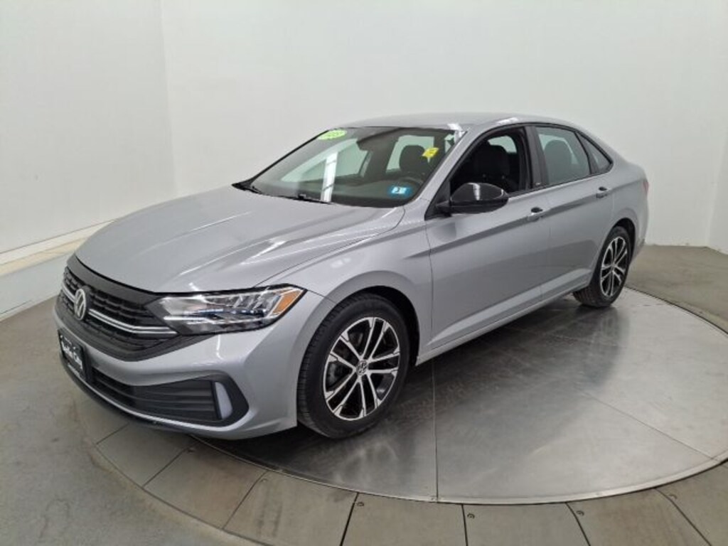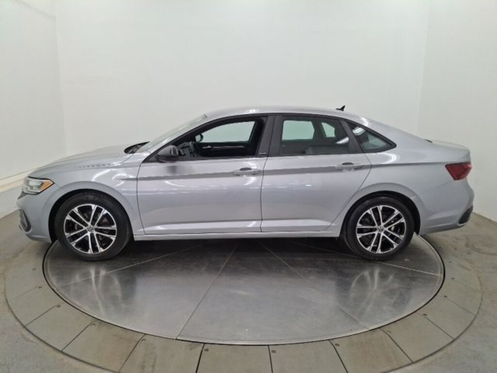 One Owner, Recent Trade, Bluetooth/CellPhone, Back Up Camera, 4-Wheel Disc Brakes, ABS brakes, Air Conditioning, AM/FM radio, Brake assist, Dual front impact airbags, Dual front side impact airbags, Electronic Stability Control, Emergency communication system: VW Car-Net Safe & Secure 5-year, Exterior Parking Camera Rear, Front anti-roll bar, Front Center Armrest, Front Comfort Sport Seats, Front wheel independent suspension, Fully automatic headlights, Heated door mirrors, Illuminated entry, Low tire pressure warning, Occupant sensing airbag, Outside temperature display, Overhead airbag, Power door mirrors, Power steering, Power windows, Radio: MIB3 Composition Color w/6.5" Touchscreen, Rear anti-roll bar, Rear window defroster, Remote keyless entry, Speed-sensing steering, Split folding rear seat, Steering wheel mounted audio controls, Tachometer, Telescoping steering wheel, Tilt steering wheel, Traction control, Trip computer, Wheels: 17" 2-Tone Machined Alloy. 2023 Volkswagen Jetta 4D Sedan 1.5T Sport FWD 8-Speed Automatic with Tiptronic 1.5L I-4 DI DOHC Turbocharged Pyrite Silver Metallic
